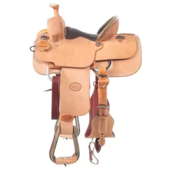 Designed with barrel racer Tammy Fischer – 5-time NFR qualifier barrel racer, Calgary Stampede, and Rodeo Houston Champion. The treeless design keeps the rider in close contact and allows the horse unrestricted movement. Fleece lined neoprene skirts are flexible, molding to your horse’s shape and bending with your horse in the turns. For the rider that likes a deep seat, the upright swell and cantle keep you secure and positioned. Forward hung stirrup leathers keep your feet from getting behind you and provide the rider great flexibility in the stirrups. Aluminum rubber grip stirrups. “The close contact of my saddle lets the horse and rider connect in a way that traditional saddles can’t“ – Tammy Fischer