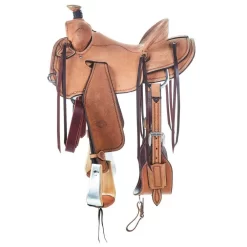 The Madison barrel is anything but basic. Roughout leather with simple border tooling gets punchy with your choice of printed leather overlays to coordinate with your saddle pad! With a deep 5″ cantle, roughout design, and rubber stirrup treads, this saddle is perfect to help keep the rider in the saddle for tight turns.