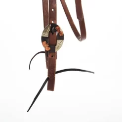 Nrs Tack Economy Oiled 5/8 Inch Browband Headstall With Copper Flower Silver Bar Cart Buckle