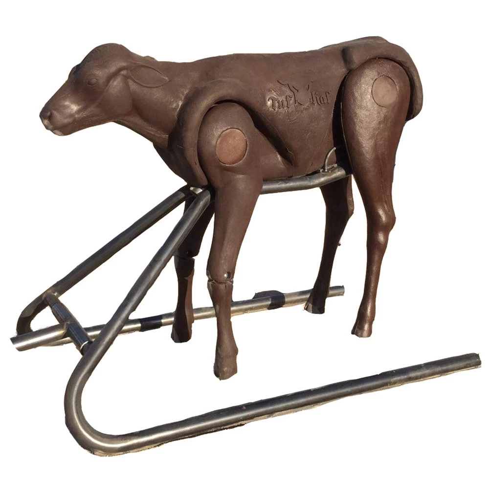 Tuf Kaf Trainer is an Elite Tie-Down Roping Training System that represents a very realistic replica of a live calf that will greatly improve and speed up the calf-roping ability of a person practicing for rodeo competition. Tough and durable, solid flexi-foam rubber, realistic moves, great rope actions and life size. This realistic calf emulates a life size calf and will get your horse to rate while you’re in perfect position to rope, deliver, pitch your slack and allow the calf to stop and pop off the sled.
