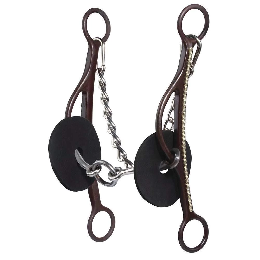 This Professional’s Choice Brittany Pozzi bit gives you more flex and bend than the original lifter. The long shank is perfect for running the more solid horse. This is a thin, smooth snaffle so you will not sore the corners of your horse’s mouth up, and you will not get that dull feel that you sometimes get with a bigger mouthpiece. This bit will rust when exposed to moisture- this creates a sweet taste in the horse’s mouth and promotes salivation.