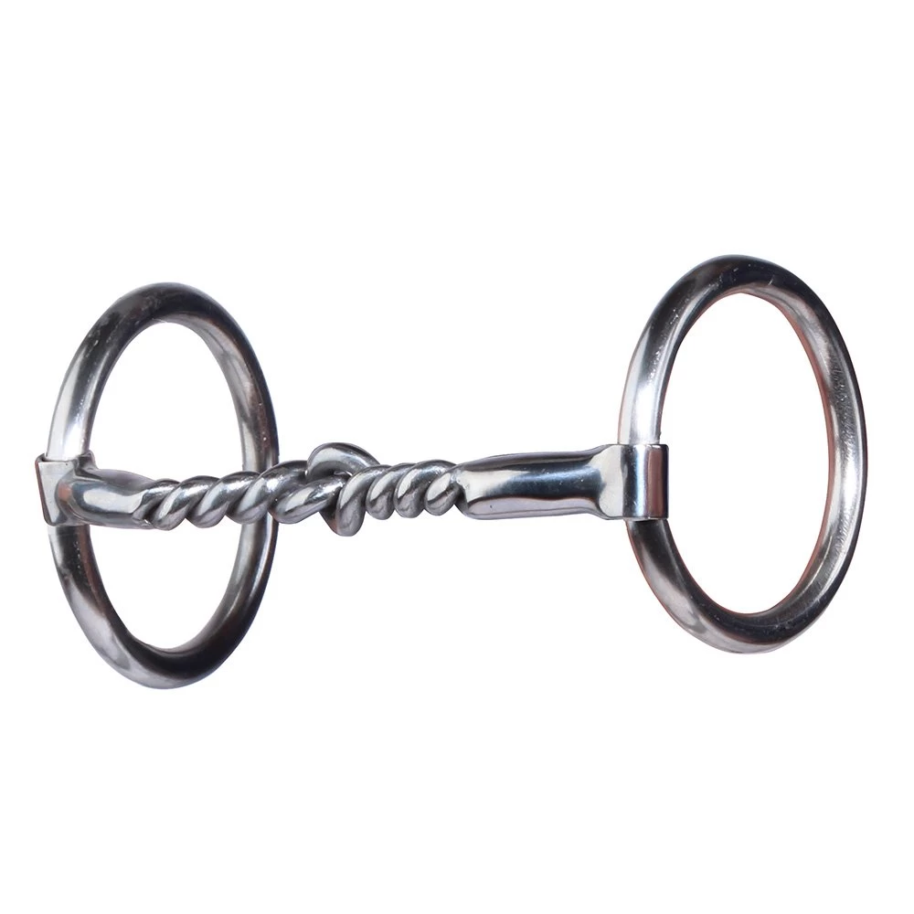 This O-ring is made out of 5/16″ diameter material. 2 7/8″ outside diameter against the extra weight in the compactness of the ring allows for a more stable feel and quick release. The two-piece half and half mouthpiece combines a twisted wire bar piece and smooth mouth across the tongue. This mouthpiece is softer than a complete twisted wire.